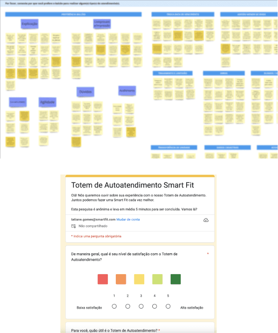 Em paralelo, fiz um formulário para atingir o máximo de unidades e conduzi conversas com times de operação de algumas unidades, que lidam diariamente com as dores e dúvidas geradas pelo uso do totem nas academias.