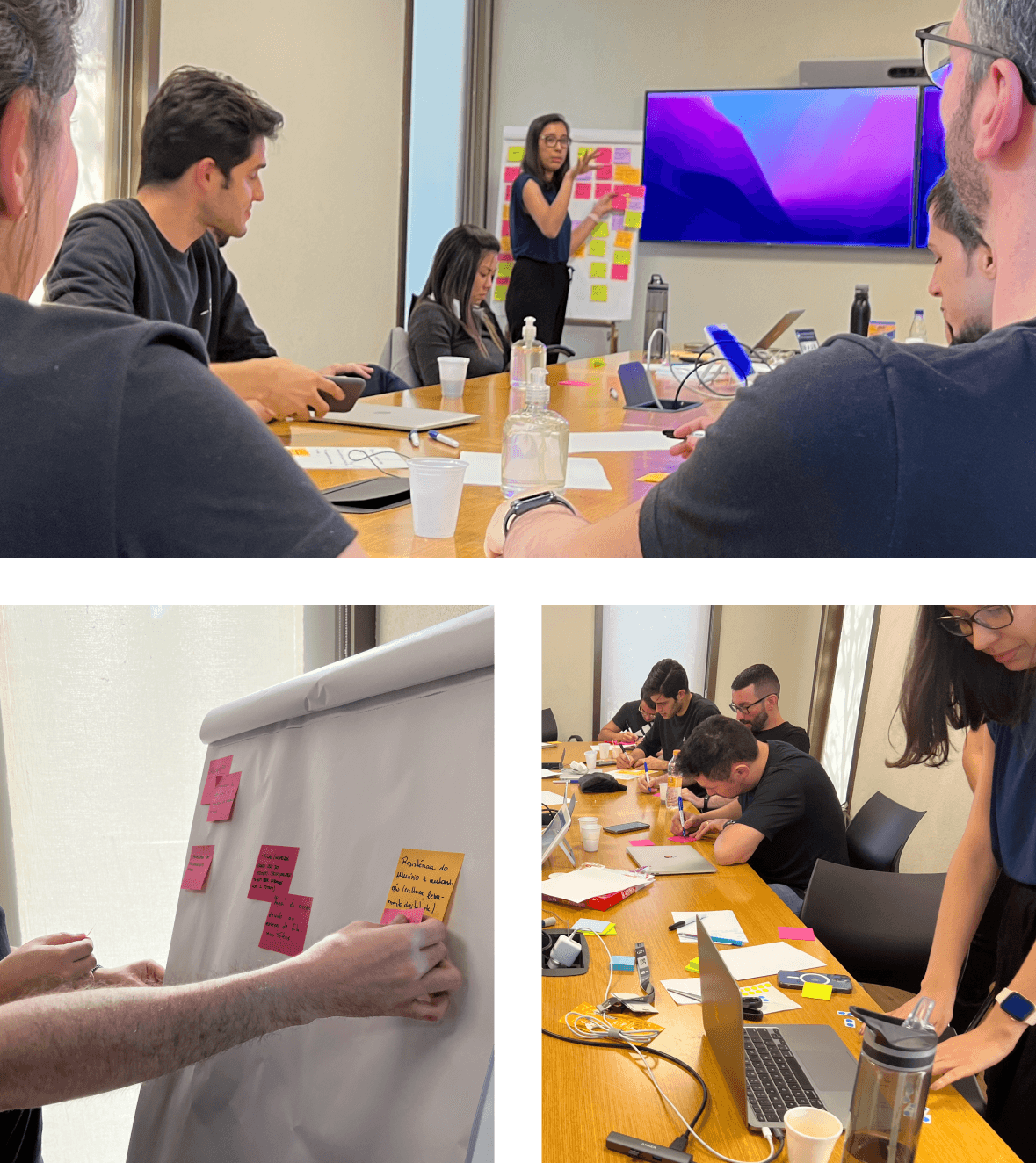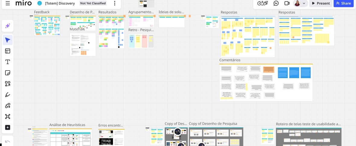 Com desafio em mãos, conduzi um design sprint para alinhar times e acelerar decisões sobre os fluxos críticos do Totem Autônomo. O sprint consolidou aprendizados da fase de descoberta, definiu métricas e riscos, e gerou hipóteses de solução que orientaram a evolução da arquitetura e dos fluxos do produto.